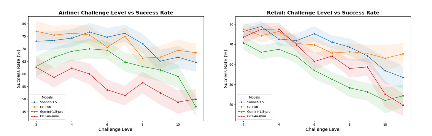 The question we hear time and time again is, “Which model is the best?” The answer: it depends. IntellAgent’s evaluations show that no single model consistently excels across all policy categories or complexity levels. For example, Gemini-1.5-pro outperforms GPT-4o-mini in low and mid-complexity tasks, demonstrating superior handling of structured interactions. However, at higher complexity levels, the performance of both models converges, highlighting universal challenges in addressing demanding scenarios.